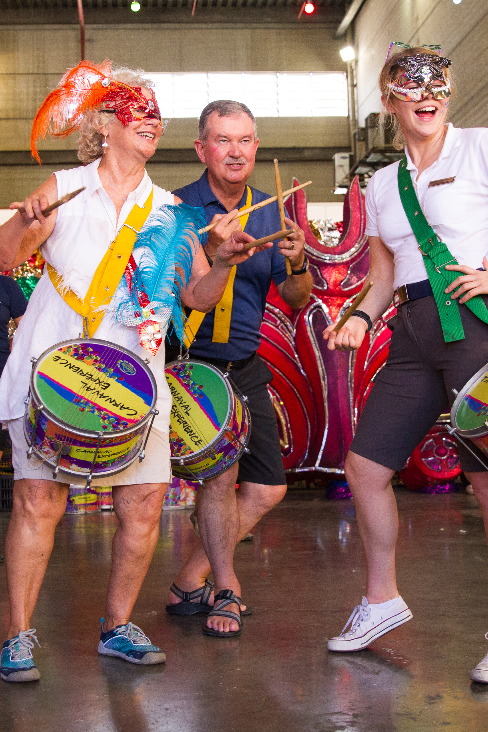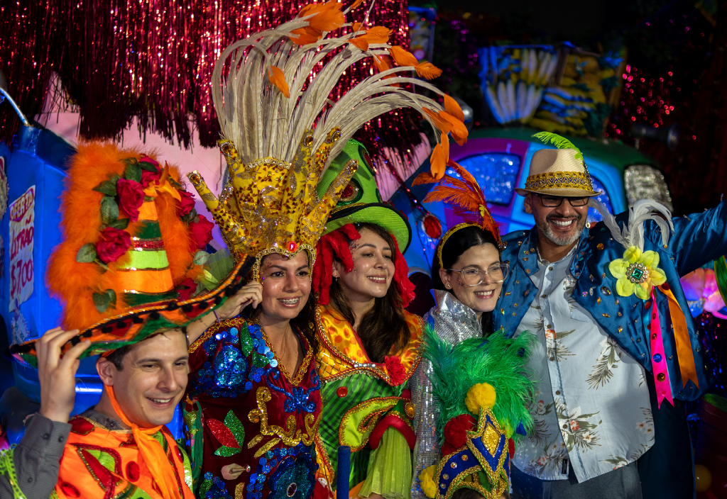 Sip a welcome caipirinha, try on costumes, see parade floats, get a dance lesson, watch a performance, and enjoy an appetizer